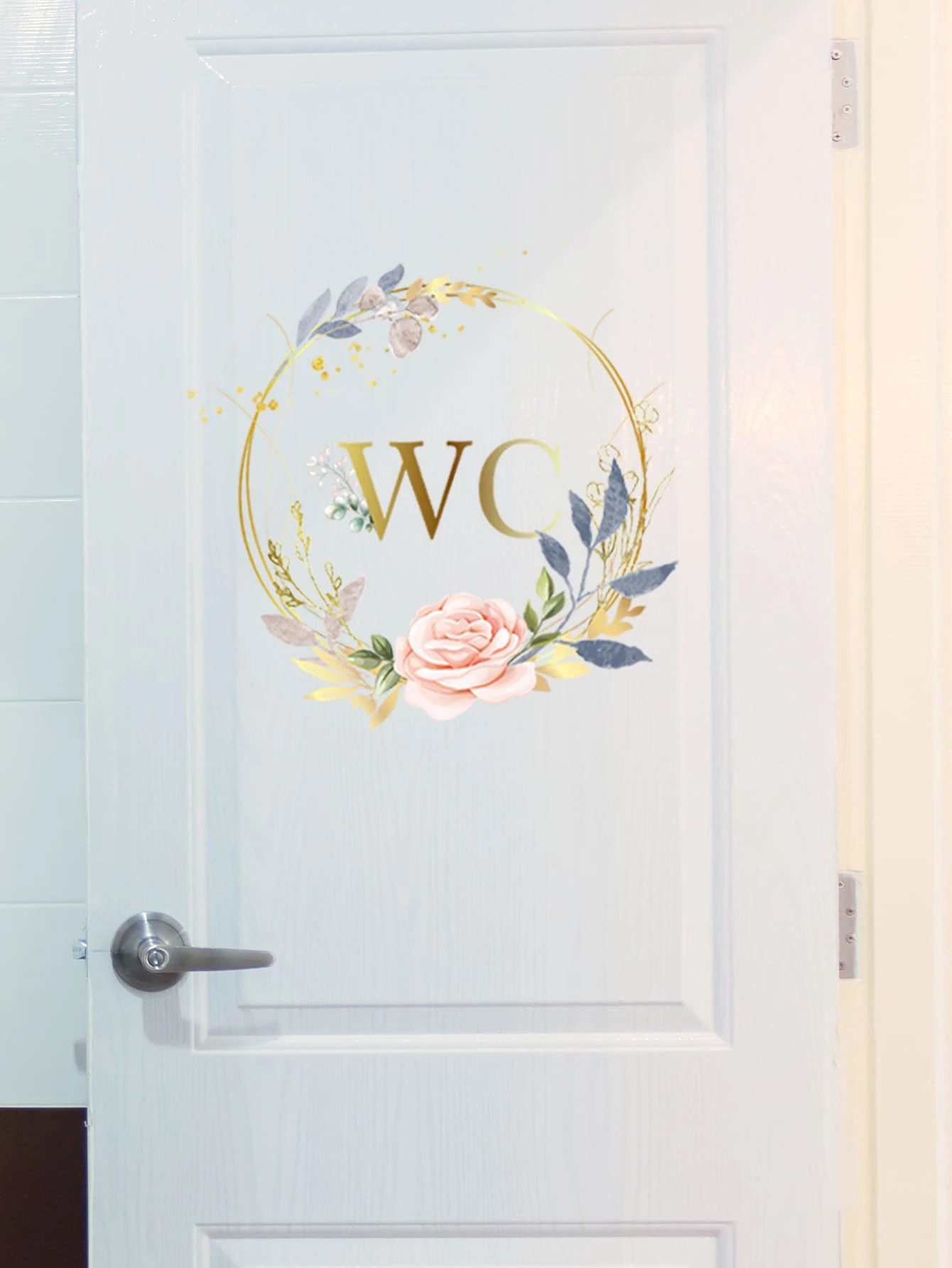 1pc Floral & Letter Graphic Wall Sticker, Modern PVC Sign Print Wall Decal For Bathroom