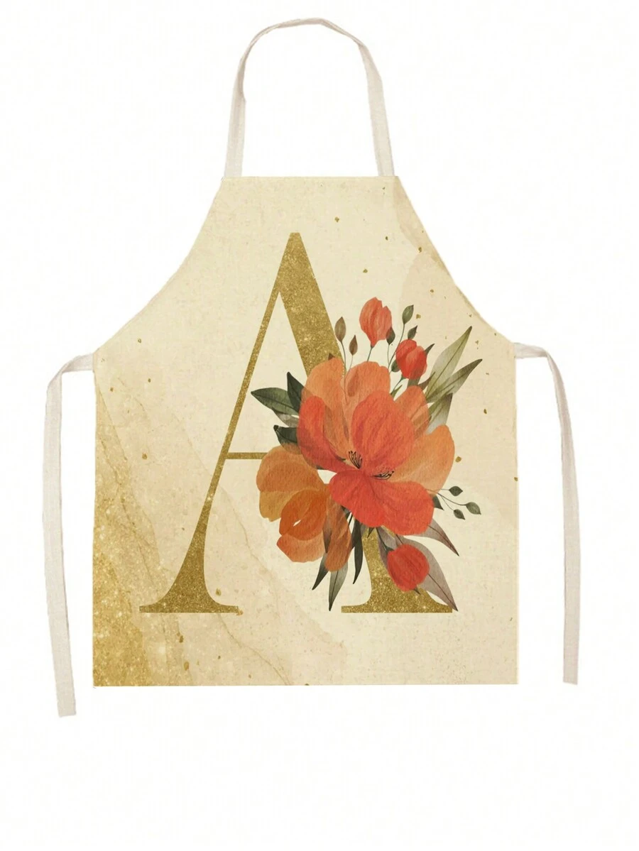 1pc Floral Pattern Alphabet & Cherry Blossom Design Linen Apron