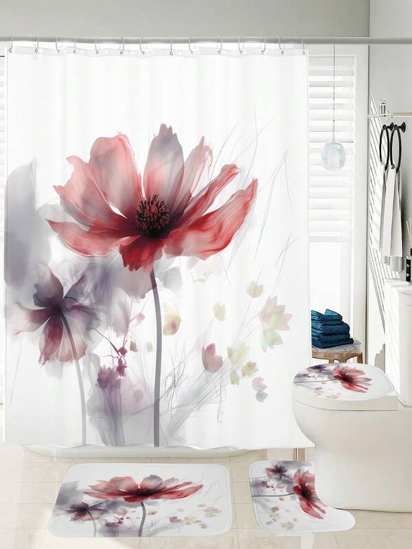 1pc Floral Pattern Digital Printed Shower Curtain Or Bath Mat