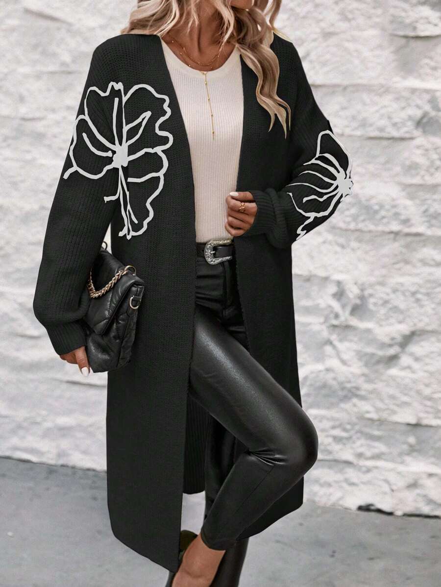 SHEIN Essnce 1pc Floral Pattern Drop Shoulder Duster Cardigan