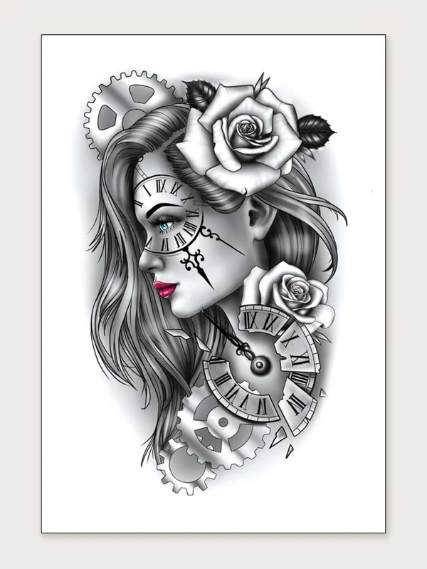 1pc Floral Patterned Temporary Body Tattoo Sticker With Side-facing Beauty Design For Arm