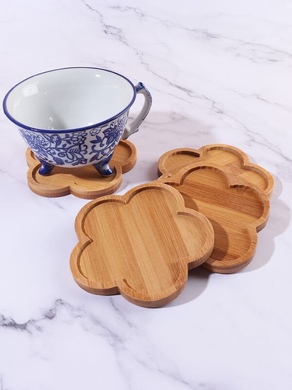 1pc Flower Design Wooden Coaster, Creative Bamboo Cup Coaster For Dining Table