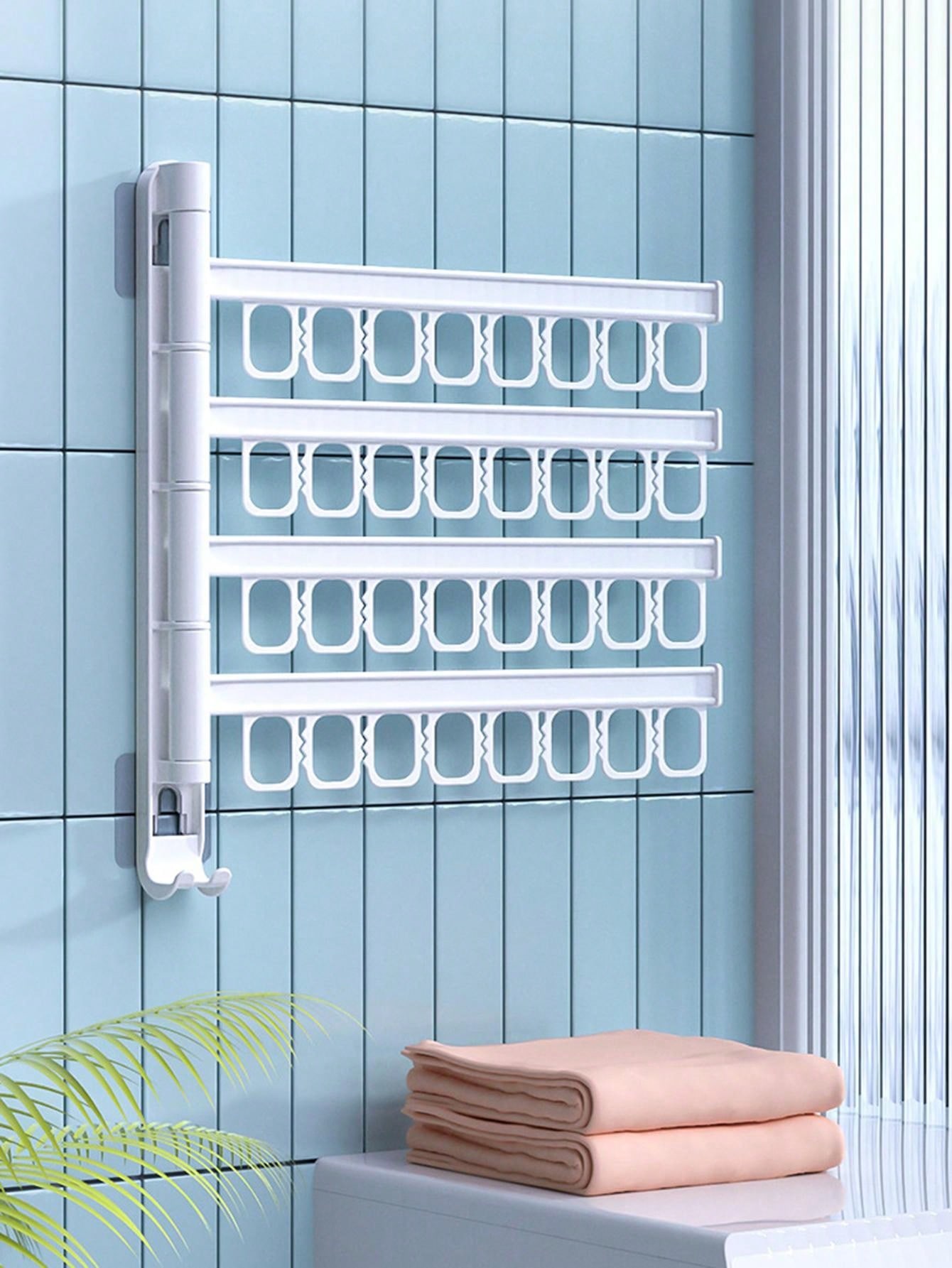1pc Foldable Hook Type Clothes Hanger, Multipurpose Wall Mounted Clothes Drying Rack For Home, Balcony, Indoor, Bathroom, Underwear, Socks Organizer