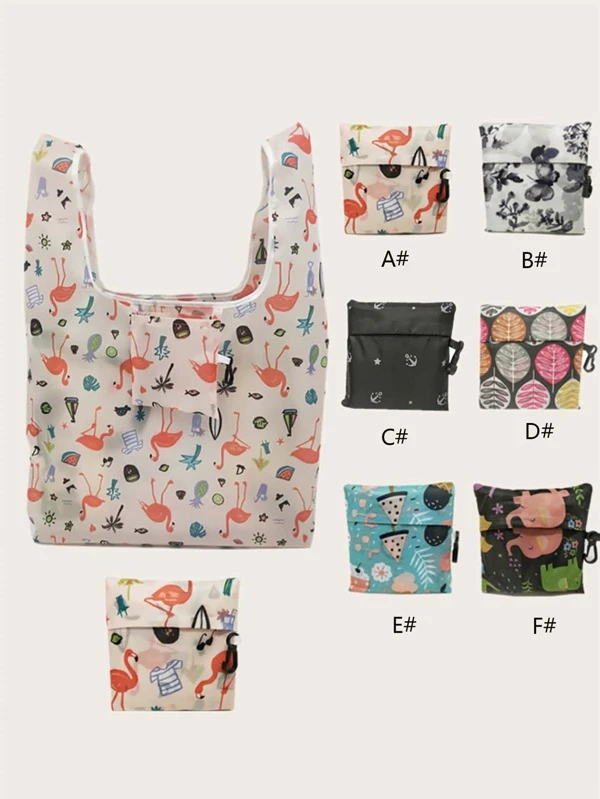 1pc Foldable Storage Bag, Cartoon Graphic Repeatable Shopping Bag For Household