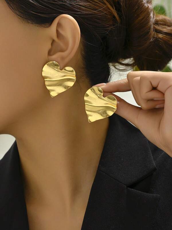 1piece/Set Fashionable Romantic 'i Love You' Heart & Wave Pattern Irregular Shape Single-Sided Gold-Tone Stud Earrings For Women's Daily Wear