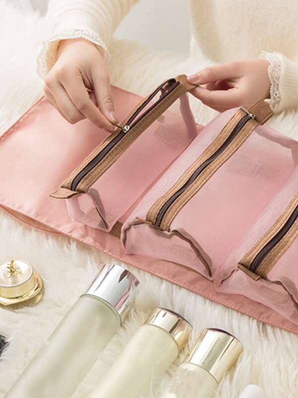 1pc Four-In-One Mesh Large-Capacity Multi-Function Makeup Bag For Women Girls