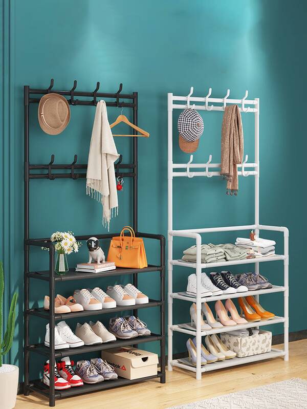 1pc Four-tier Clothes, Hats, Shoes, Scarves Organizer With Double-rod Laundry Drying Rack, Standing Clothes Hanger For Indoor Room, Removable & Random Color