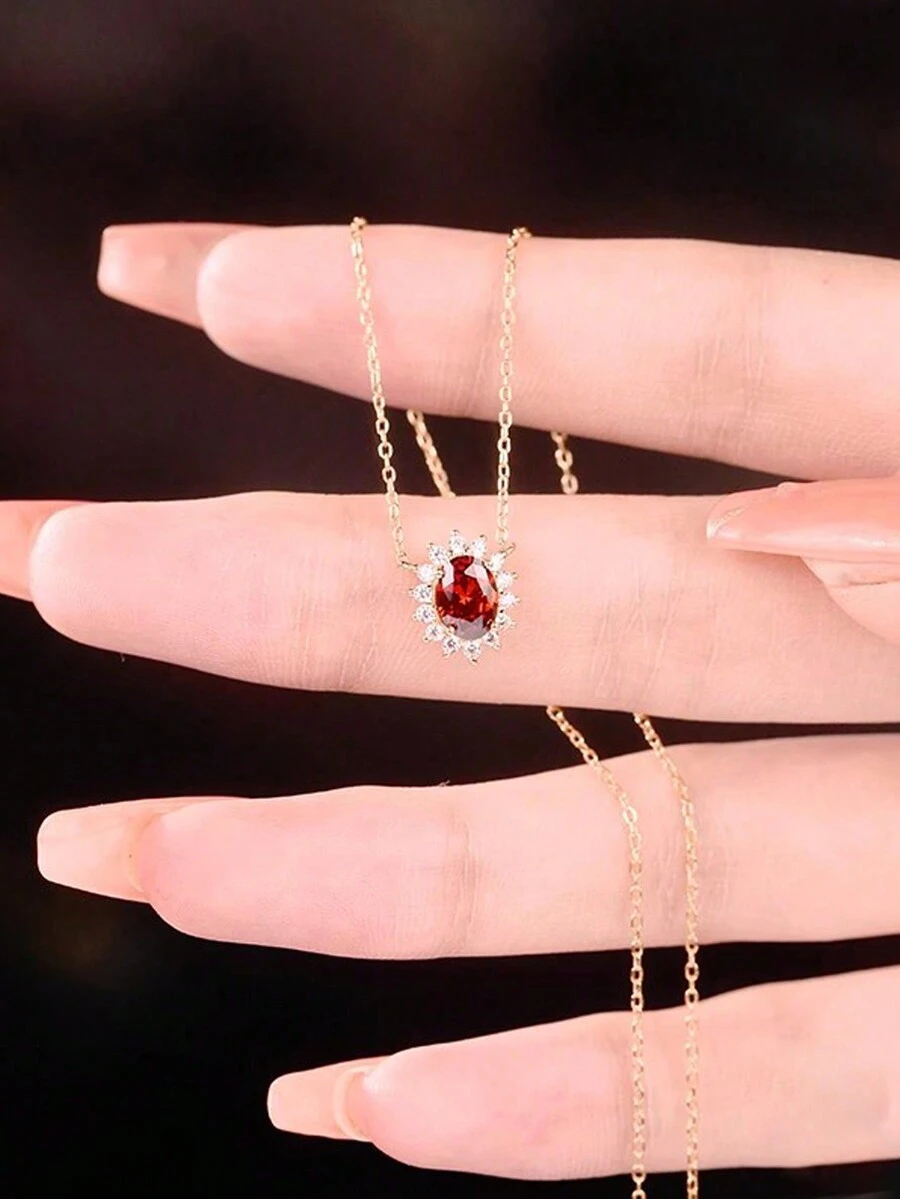 1pc French Vintage Exquisite S925 Sterling Silver Garnet Red Pendant Necklace Plated With 18K Gold Ruby Collarbone Chain Versatile For Mother's Day Gift