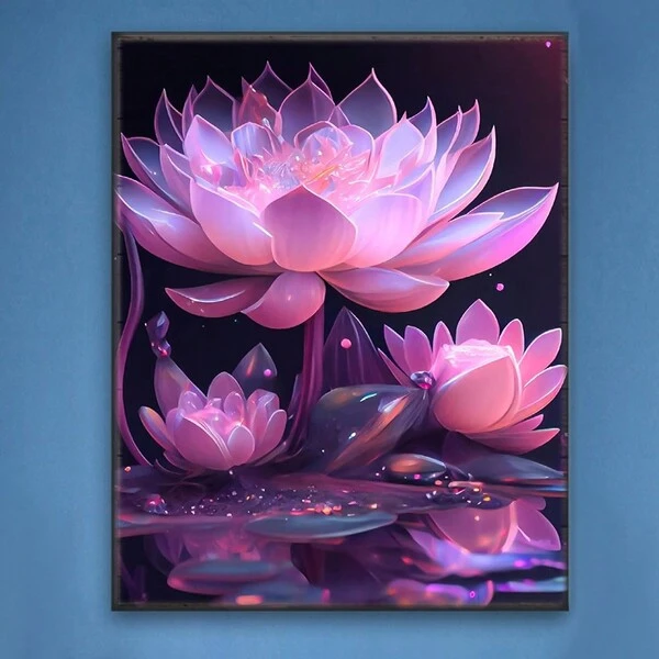 1pc Full Square Diamond Painting Kit Lotus Handmade Gift Diamond Mosaic Flower Home Decor
