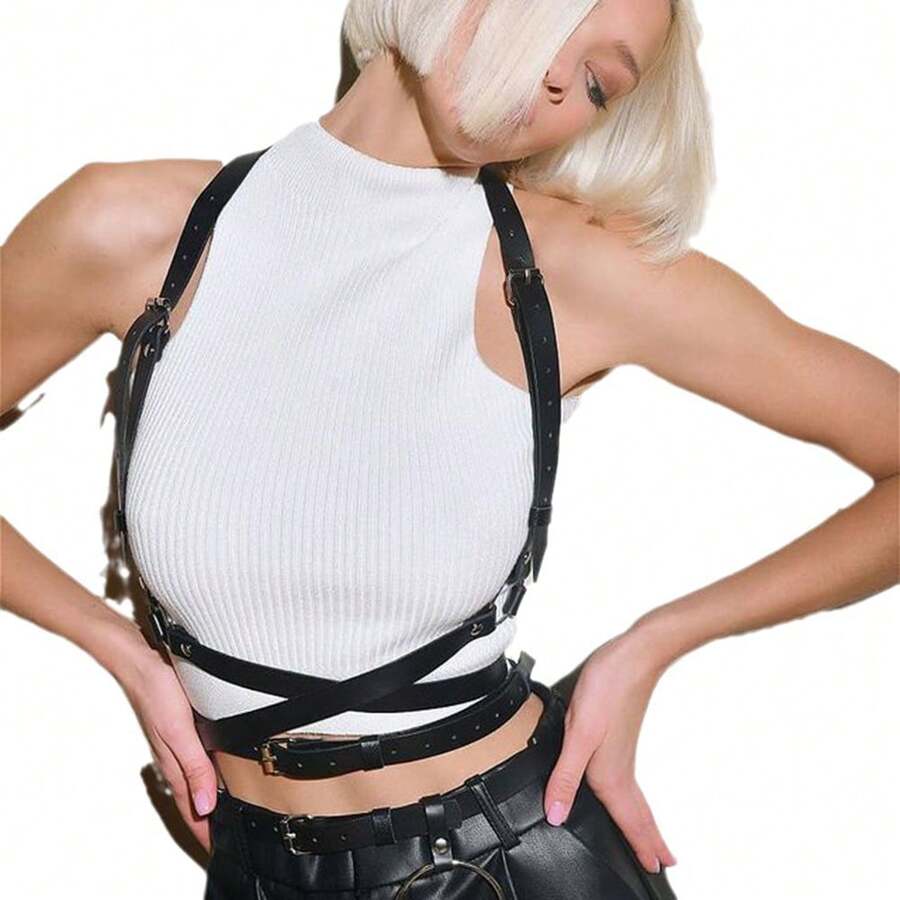 1pc Functional Punk Style Harness Beltt, Streetwear Fashion Accessory For Women To Match Dresses, Jk, Shirts And Camisoles