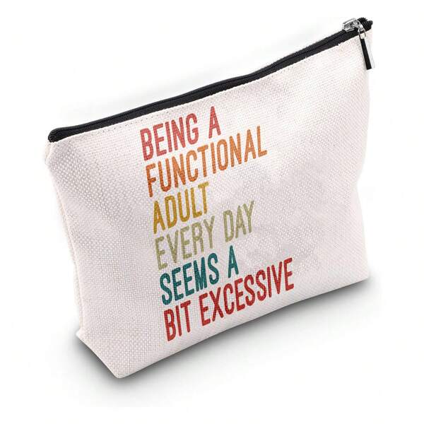 1pc Funny & Sarcastic Wreath & Text Print Makeup Bag, Large Capacity Cosmetic Organizer, Portable Toiletry Bag, Travel Storage Bag