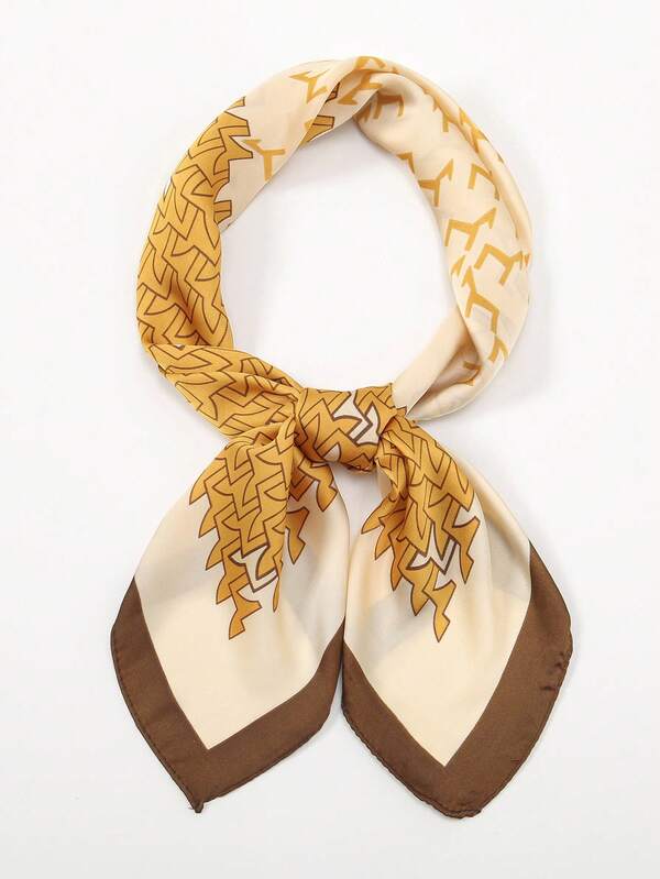 1pc Geometric Patchwork Printed Silk Square Scarf, Headband, Bag Decoration, Neck Scarf For Women