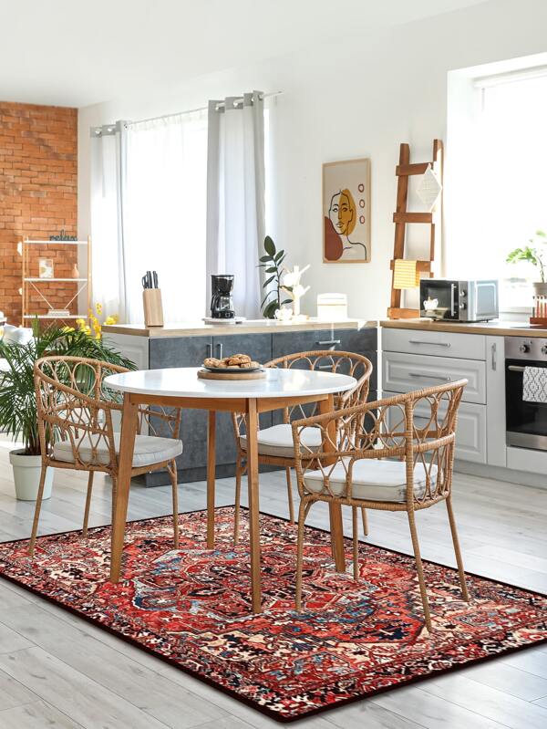 1pc Geometric Pattern Rug, Vintage Floor Mat For Dining Room Kitchen, Indoor Carpet, Home Decor