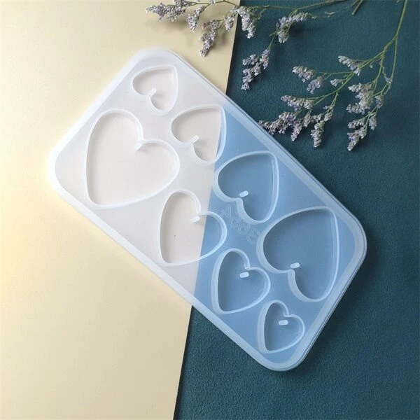 1pc Geometric Pattern Silicone Mold For Diy Jewelry Making, 8 Cavities With Heart Shaped Pendant & Earrings