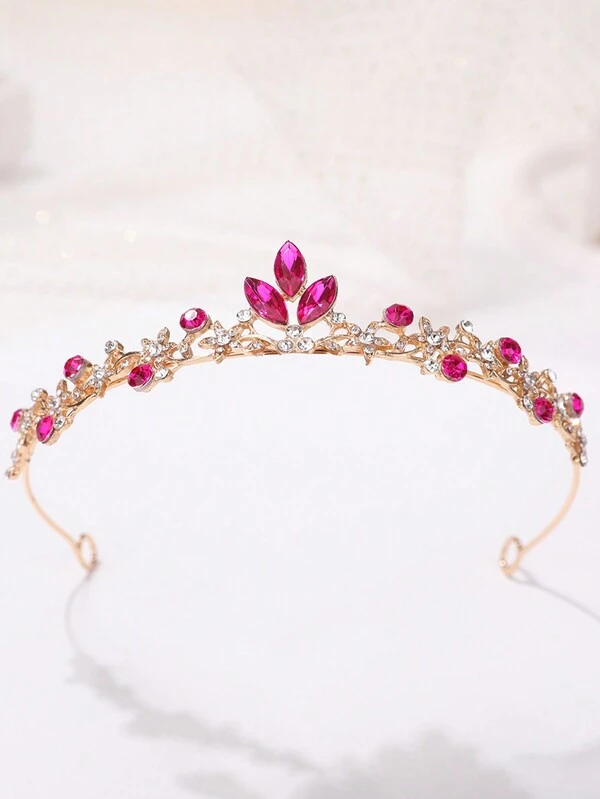 1pc Girls' Crown Shaped Hairband With Rhinestone Decor, Sweet And Luxurious Style