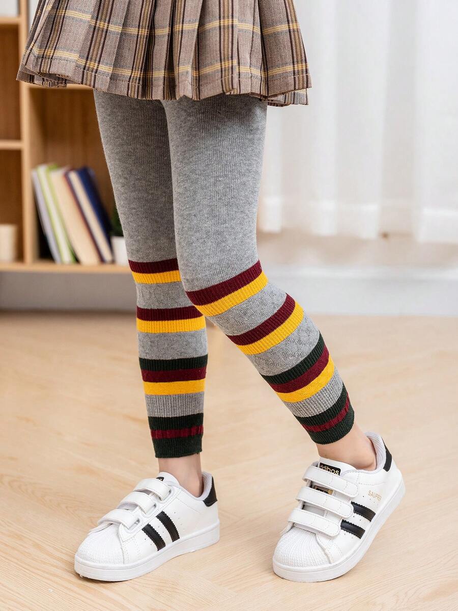 1pc Girls' Korean Style Contrast Color Leggings For Outfit