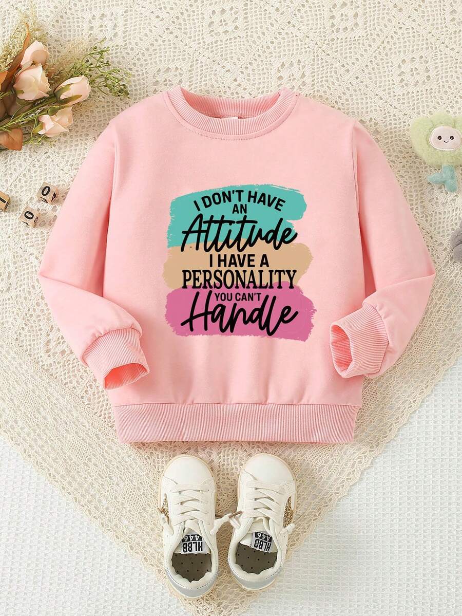 1pc Girls' Simple Colorful Letter Printed Sweatshirt For Casual Wear, Autumn/Winter