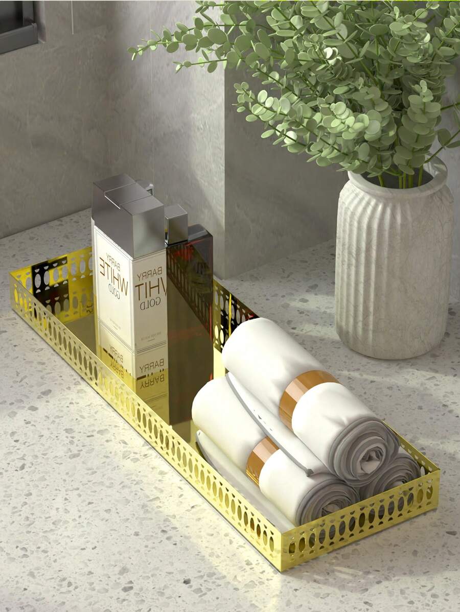 1pc Gold Bathroom Vanity Tray, Metal Toilet Tank Tray, Kitchen Trays, 18" x 6" Rectangle Bathroom Tray for Counter, Chrome Tray for Soap Dispenser Perfume Jewelry