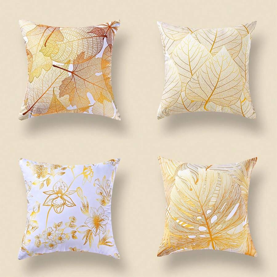 1pc Gold Palm Tree Printed Cushion Cover, Modern Minimalist Peach Skin Square Throw Pillow Case For Living Room, Bedroom, Sofa Or Bed Decoration, All Seasons