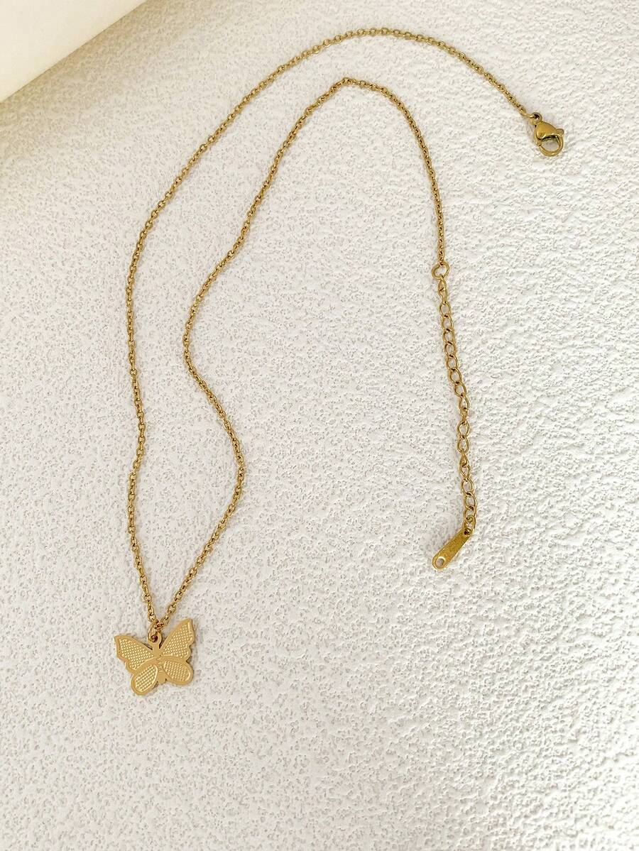 1pc Gold-Plated Butterfly Pendant Titanium Steel Necklace, Suitable For Daily Wear And Travel