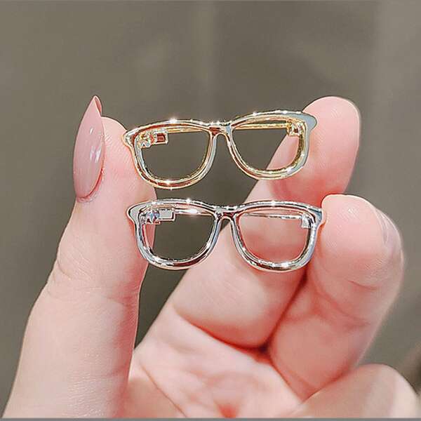 1pc Gold-color & 1pc Silver-color Hollow Out Glasses Shaped Brooch, Prevent Clothes From Slipping, For School Uniform & Suit