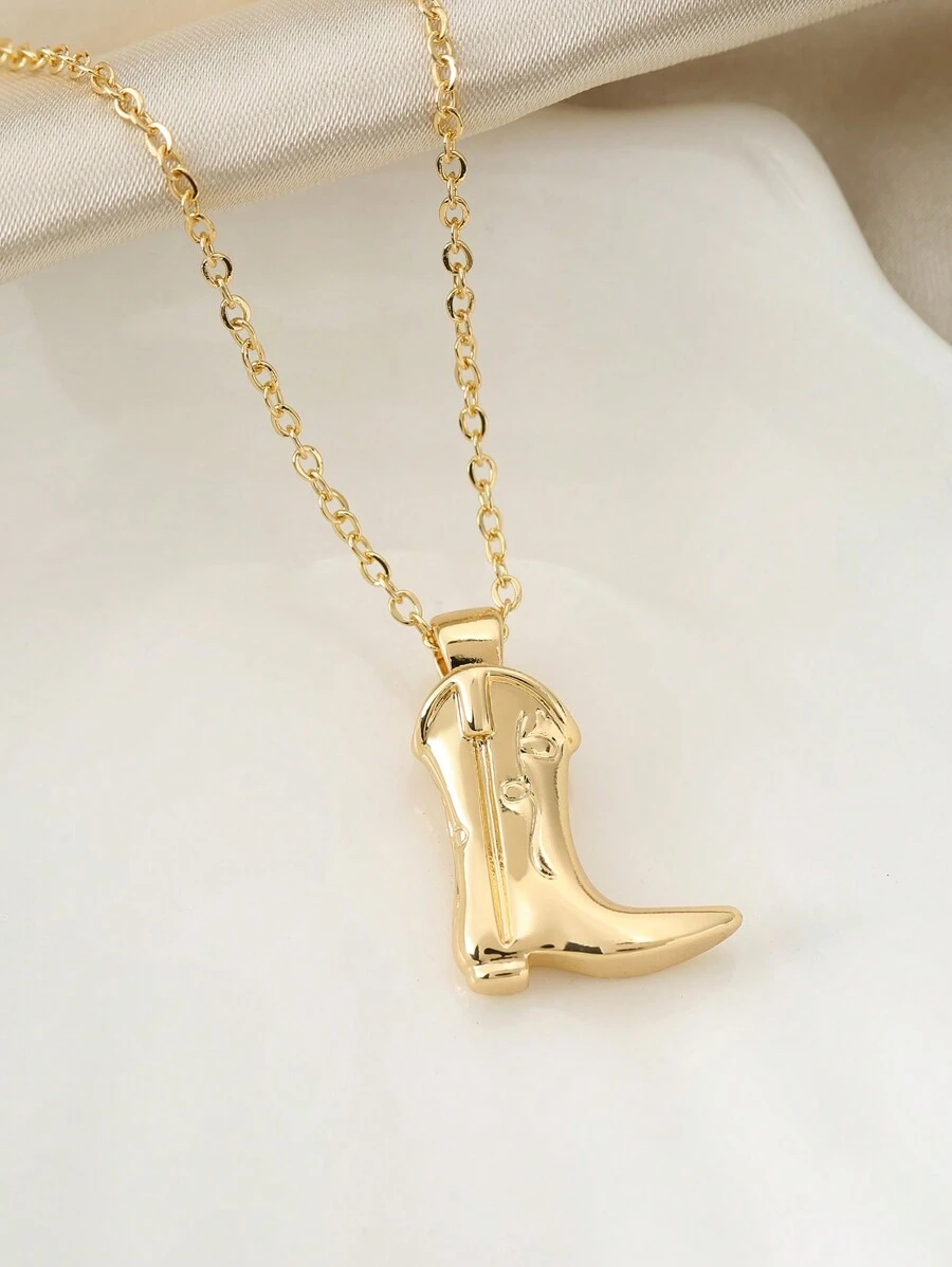 1pc Golden Cowboy Boot Pendant Necklace