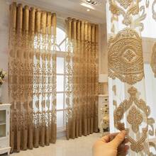 1pc Golden Hollow Out Gauze Curtain, For Luxury Living Room & Bedroom Window Decoration