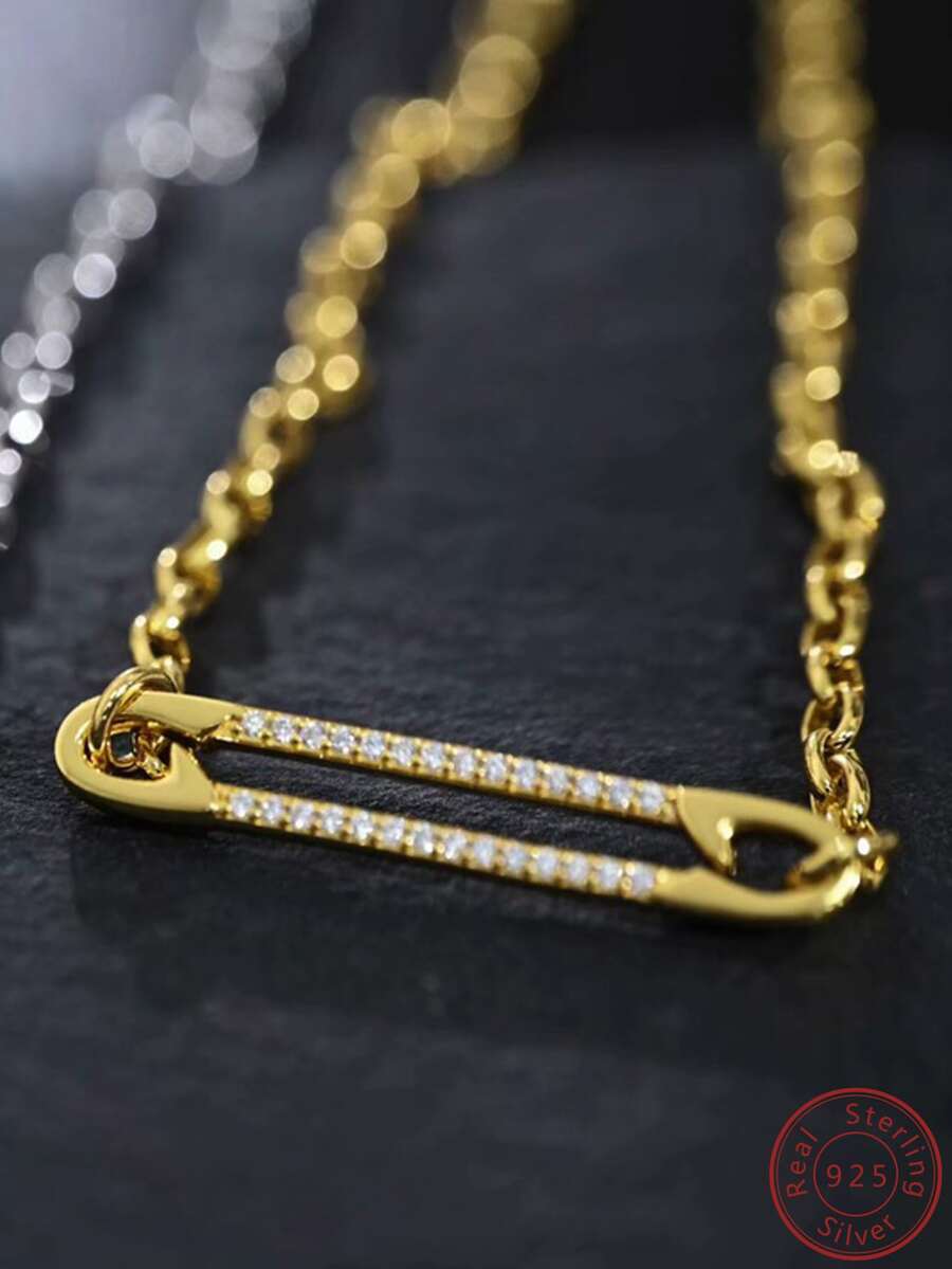 1pc Golden S925 Silver Oxidized Cube Zirconia Pendant Necklace For Women, Elegant & Versatile For Daily Wear, Dating, And Travel With Gift Box Packaging