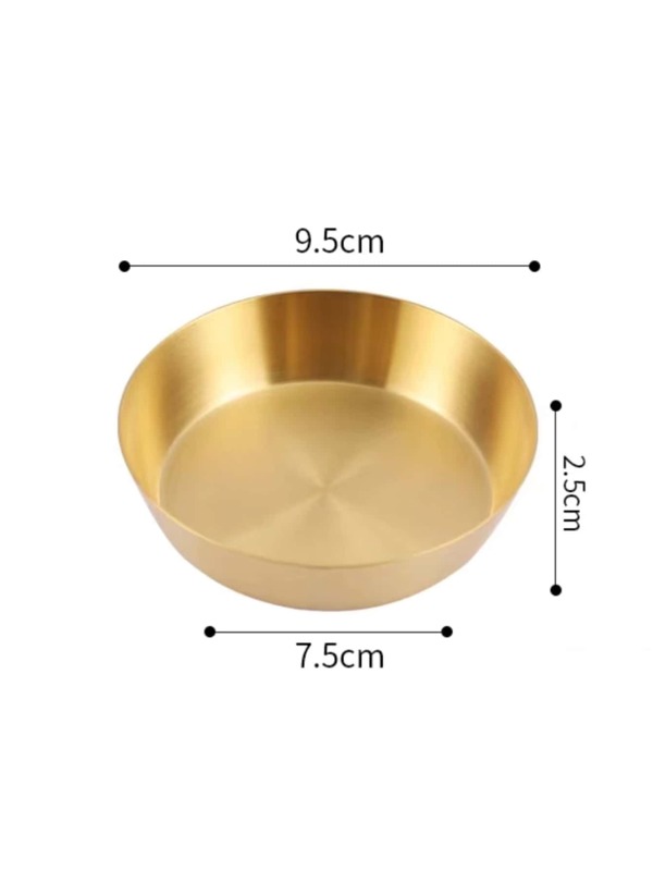 1pc Golden Stainless Steel Seasoning Dish / Dinner Plate