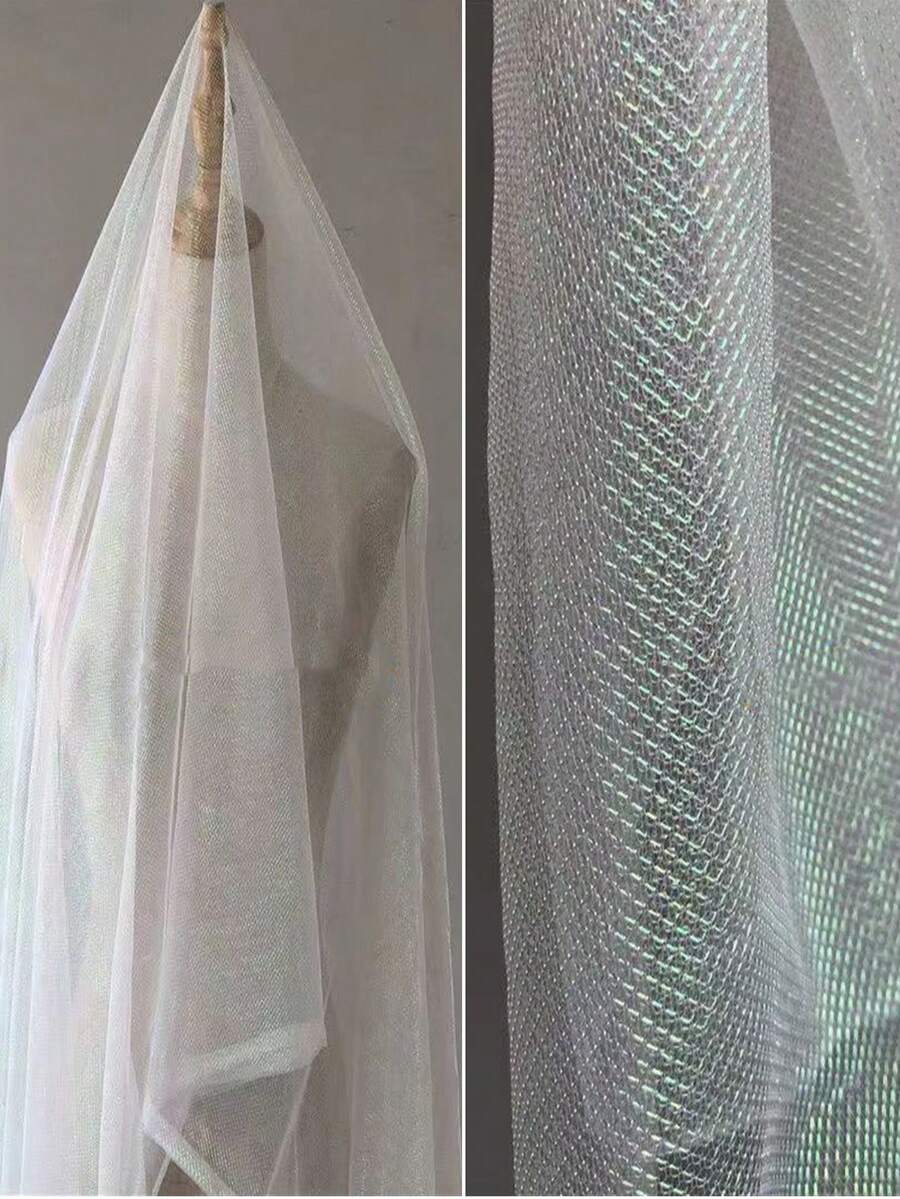 1pc Gradient Two-Color Mesh Fabric, Laser Texture See-Through Fabric Long Skirt Shawl Creative Handmade Fabric