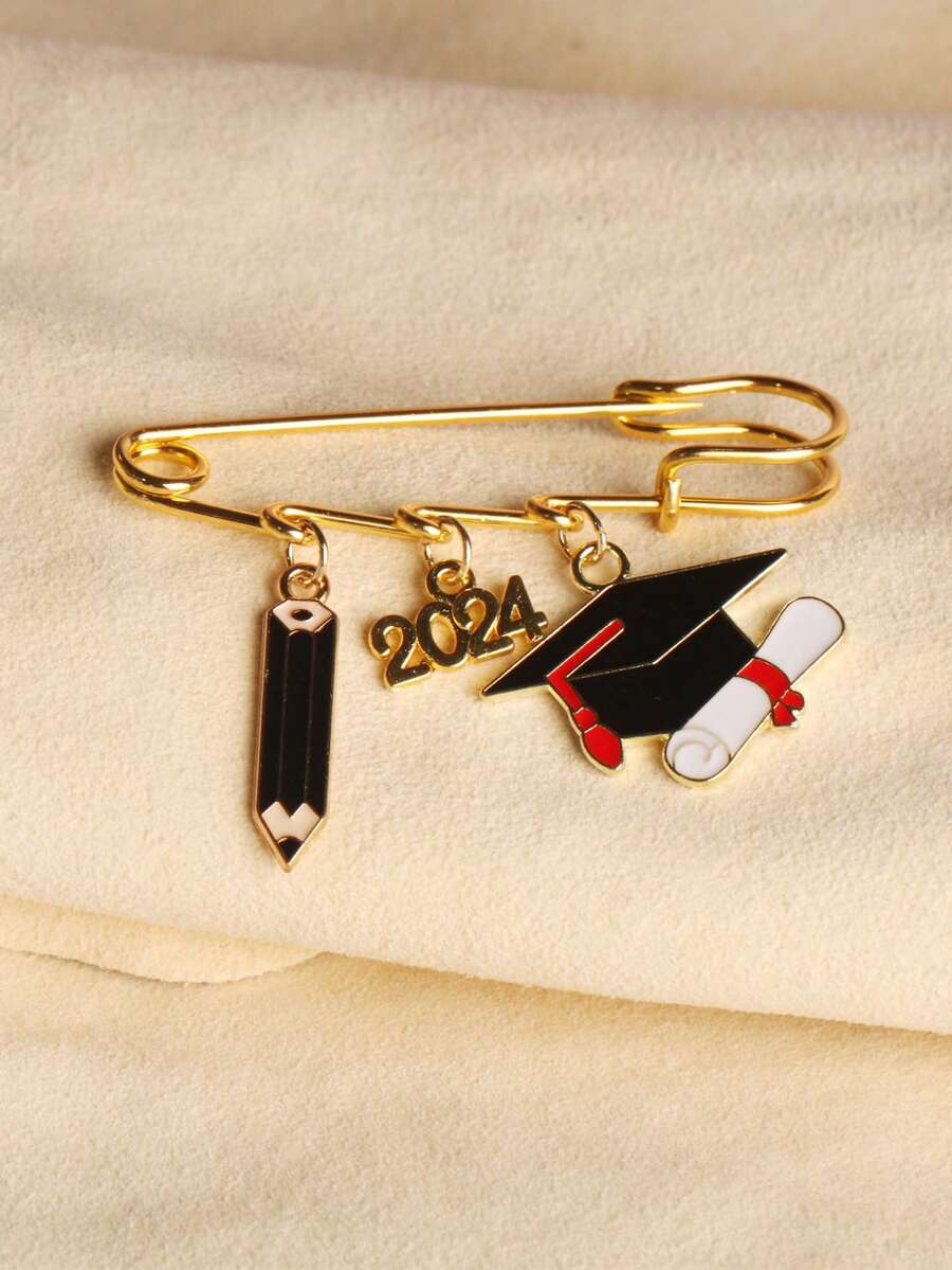 1pc Graduation Season Gift Doctoral Cap & Pen Element Brooch
