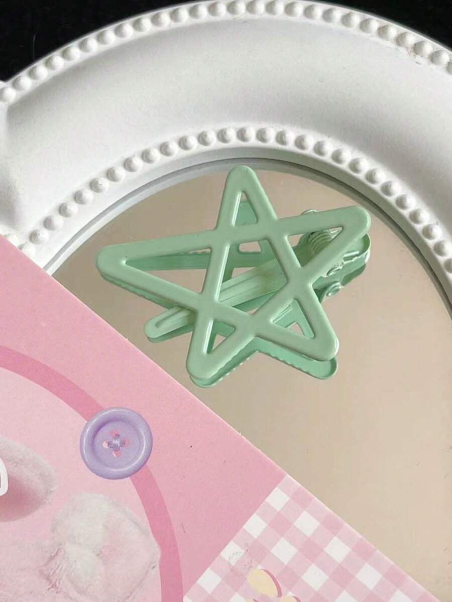 1pc Green Color Hair Clip For Children And Teenage Girls, Colorful Star-Shaped Design, Simple And Casual Style, Suitable For Daily Wear