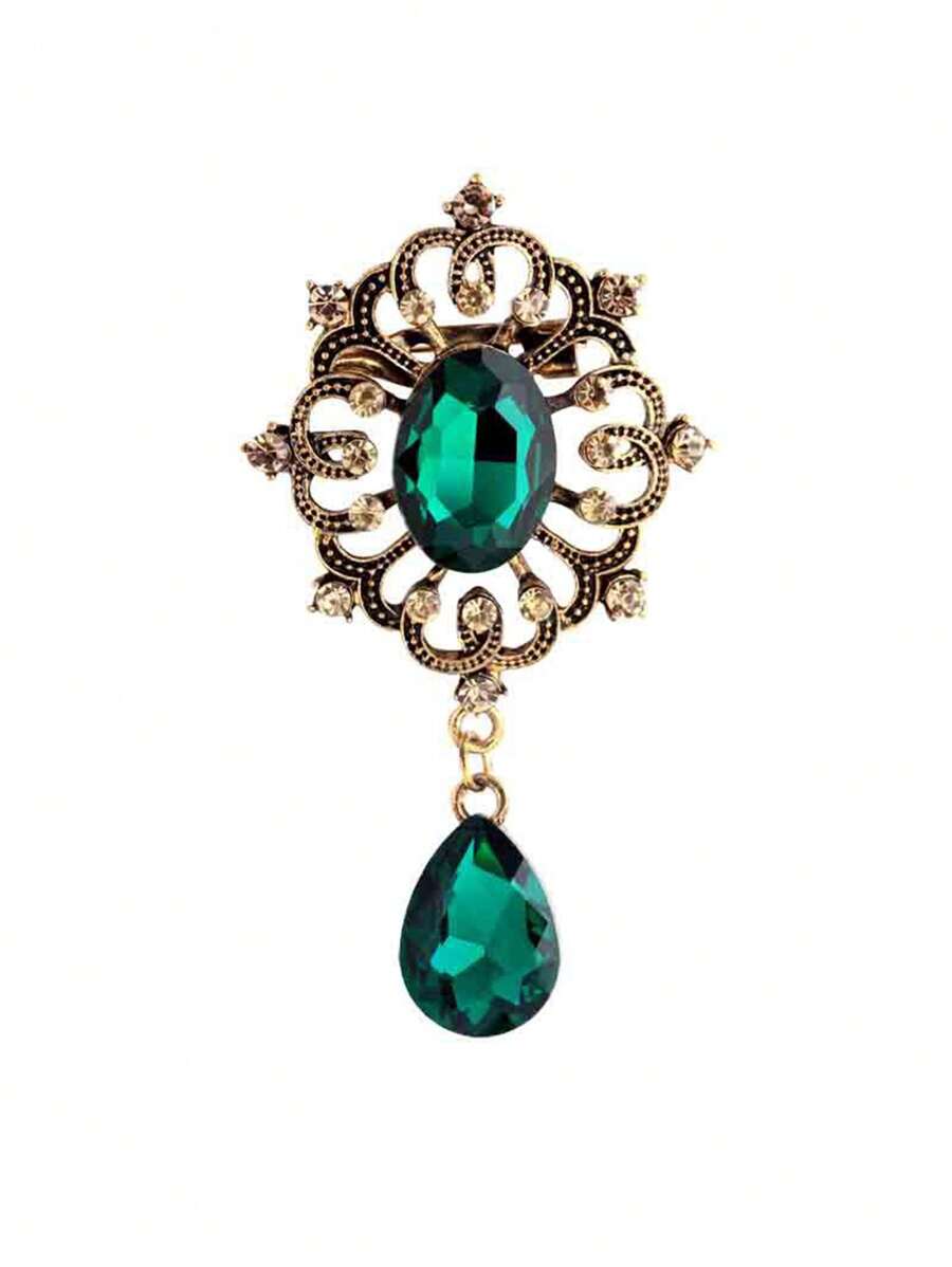 1pc Green Crystal & Shiny Diamante Decor Brooch Pin, With Pendant Design And Durable Clasp, For Women's Vintage Suit And Collar
