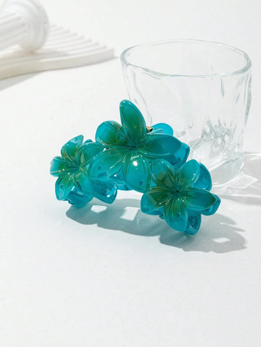 1pc Green Plastic Hair Claw Decorated With Three Flowers For Women