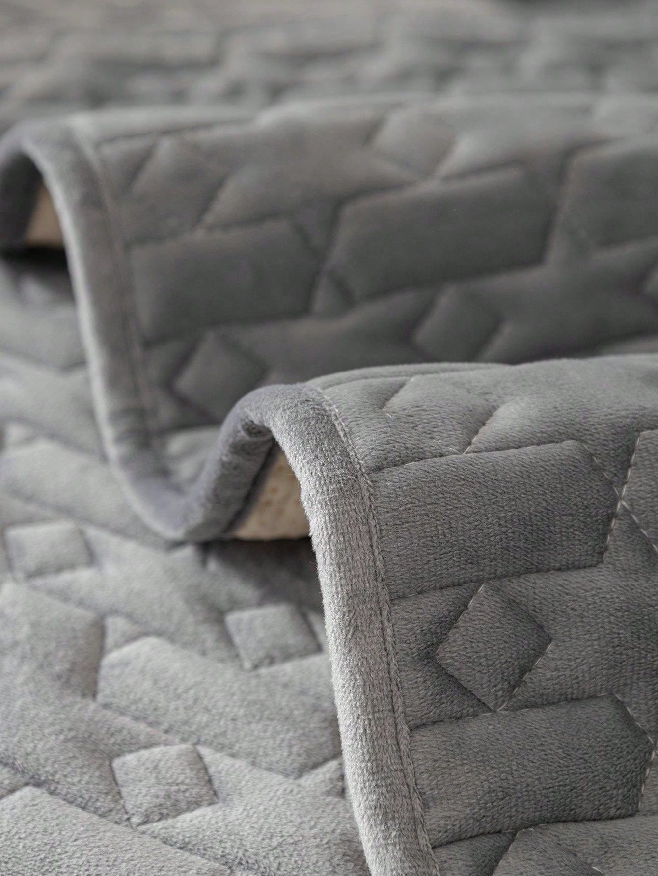 1pc Grey Short Plush Technical Fabric Sofa Cover, Modern Geometric Pattern Simple Style, Year-round Use, Anti-slip And Stain Resistant