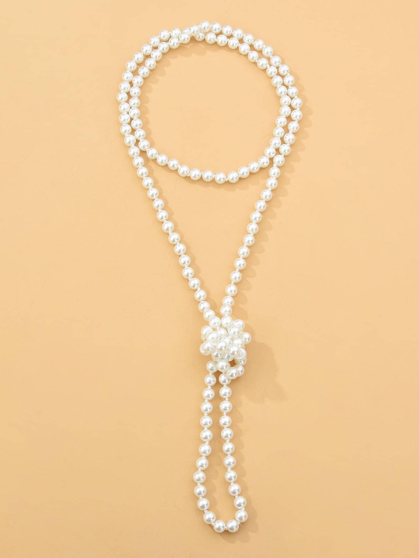 1pc Hand-knotted Imitation Pearl Beaded Halloween Party Long Necklace For Women's Wedding Banquet Jewelry