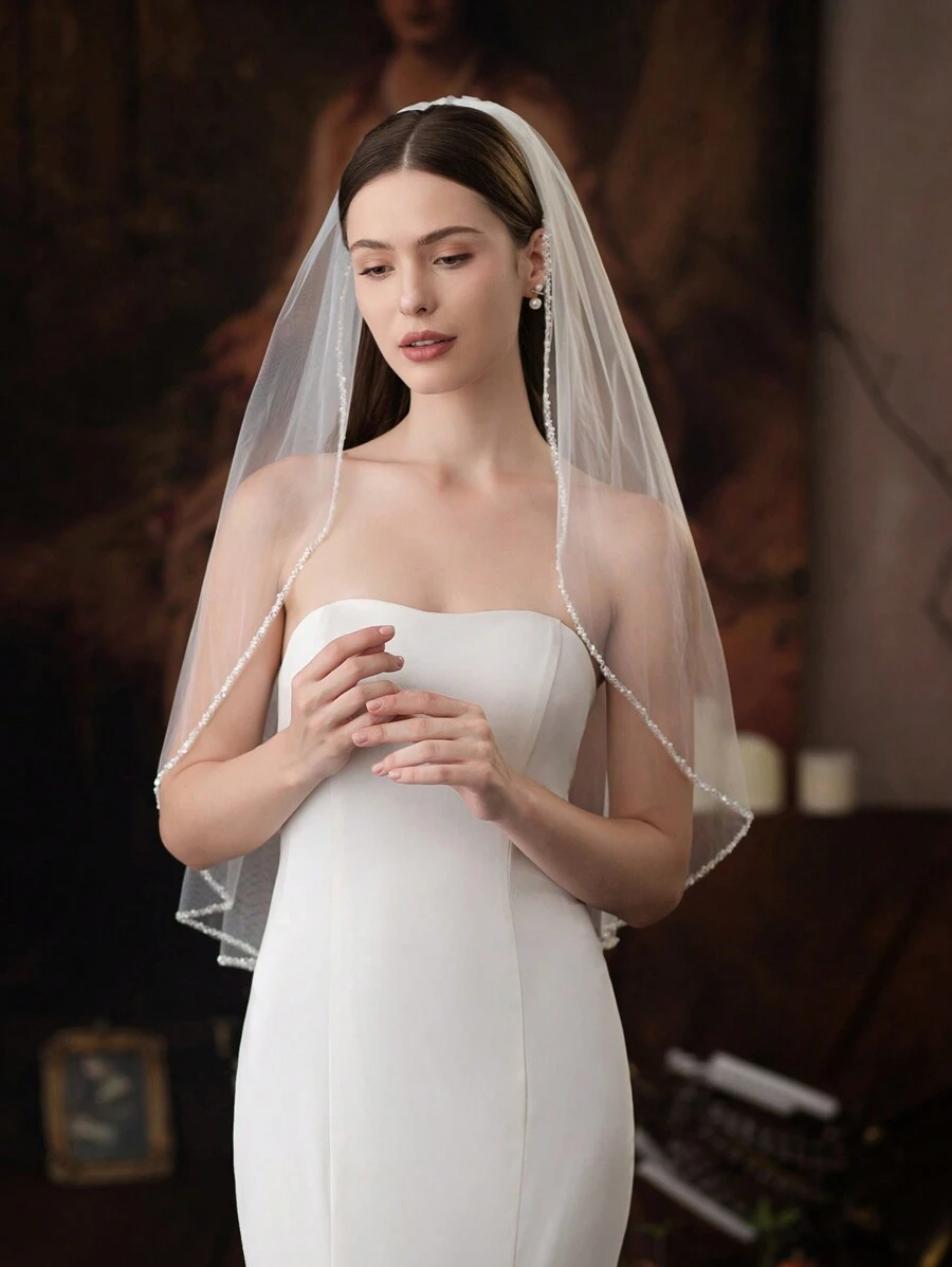 1pc Handmade Pearl Bridal Veil (with Comb)