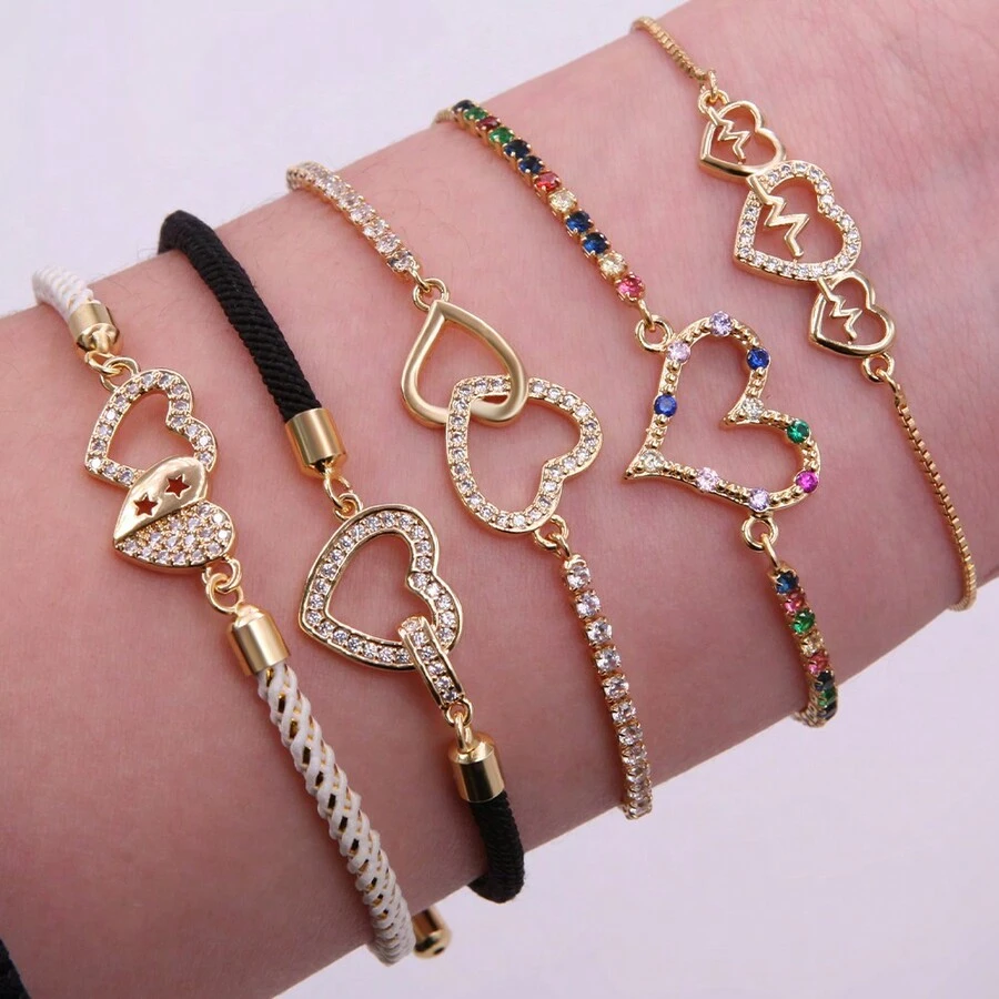 1pc Heart & Peach Heart & Rhinestone Decoration Bracelet, Perfect Valentine's Day/Anniversary Gift For Friends/Lovers/Family, Suitable For Daily Wear