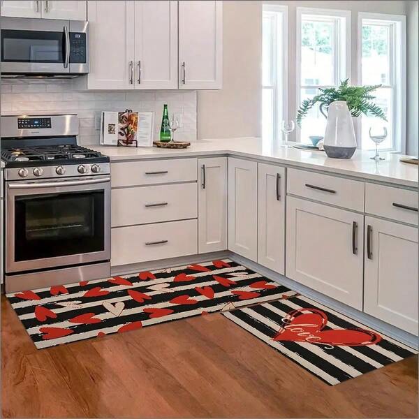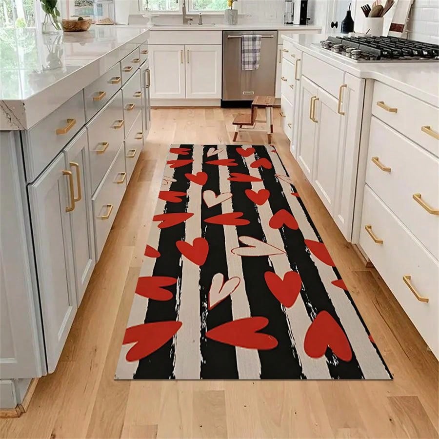 1pc Heart Shaped Crystal Velvet Entrance Door Mat, Long Kitchen Soft Anti-Skid Anti-Oil Rug, All Seasons Durable, Anti-Fatigue