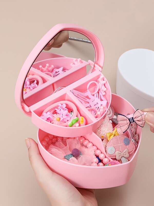 1pc Heart Shaped Jewelry Storage Box, Pink Jewelry Organizer For Household