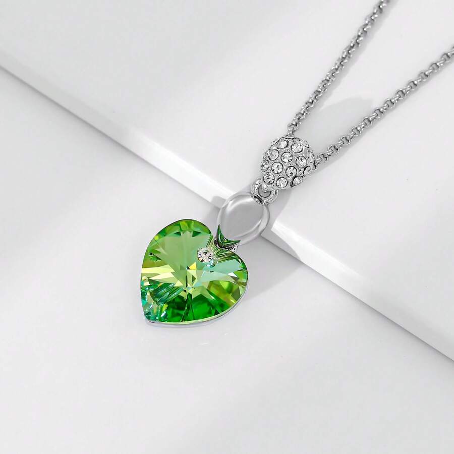 1pc Heart Shaped Rhinestone Decoration Necklace For Women, Green Color With Copper Charm Pendant, Bohemian Style Fashionable Elegant Jewelry, Holiday Gift
