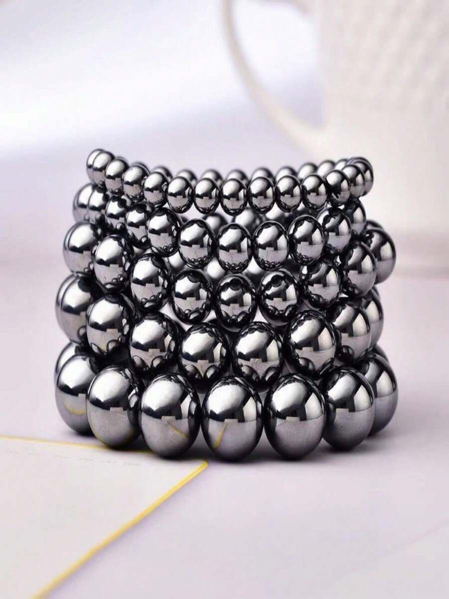 1pc Hematite Single Circle Round Beads Bracelet, Energy Stone Bracelet, Ornament For Men
