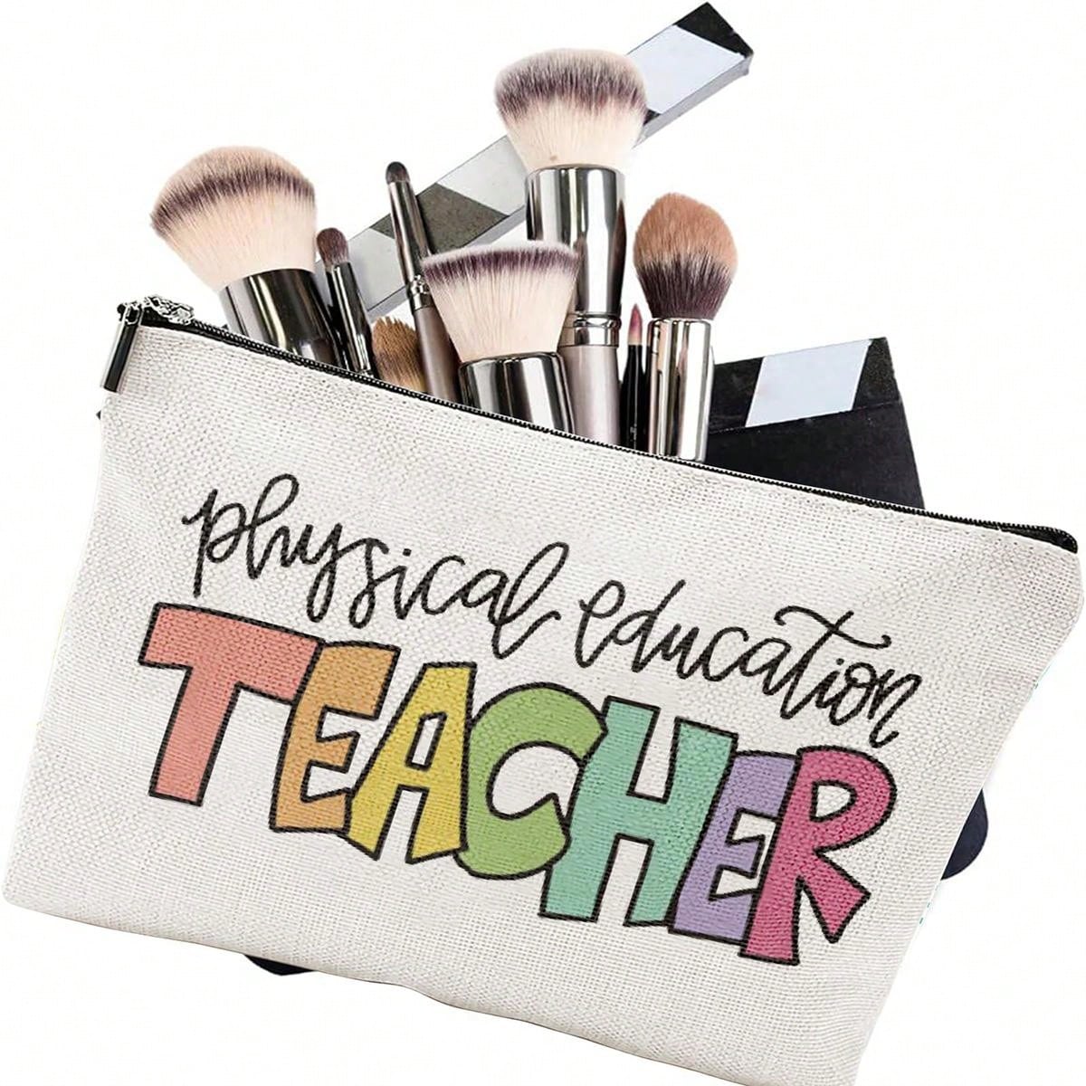 1pc High-Density Linen Cosmetic Bag With Letter Print