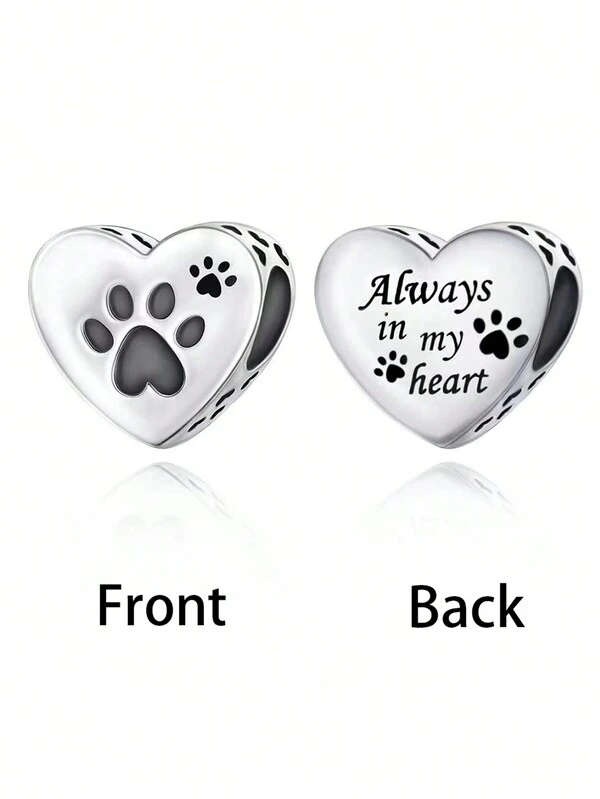 1pc High-End Quality 925 Sterling Silver 'Always In My Heart' Pet Paw Charm, Diy Birthday Or Birth Gift