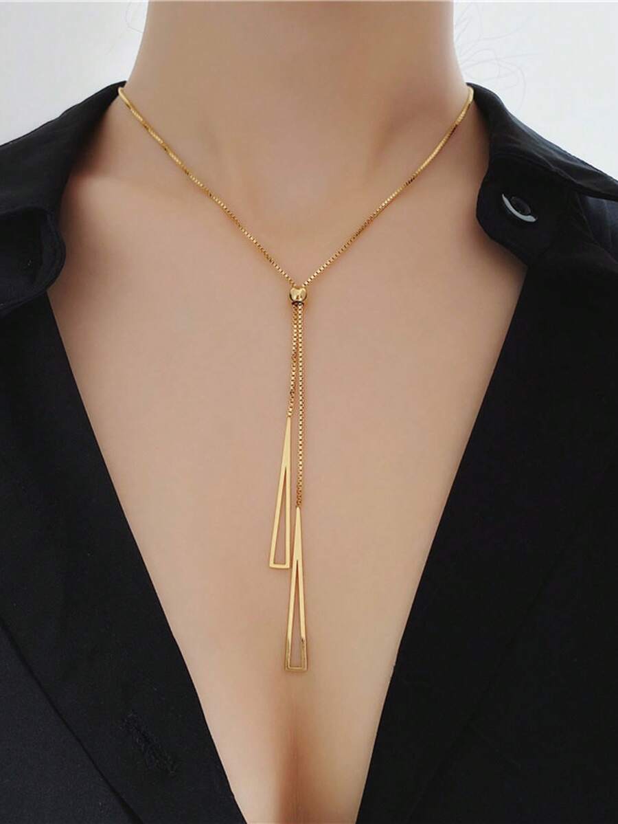 1pc High-End Streetwear Accessory - Premium Quality Double Triangle Pendant Necklace, All-Match Autumn And Winter Chain Neckwear, Unique And Trendy Tassel Design Rose Gold Necklace, European And American Ins Fashion