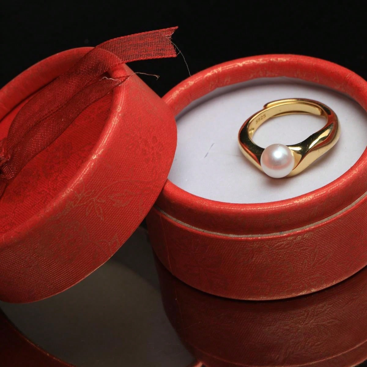 1pc High-End Stylish Natural Akoya Pearl Ring With S925 Sterling Silver Adjustable Band For Women'S Daily Or Festival Wear