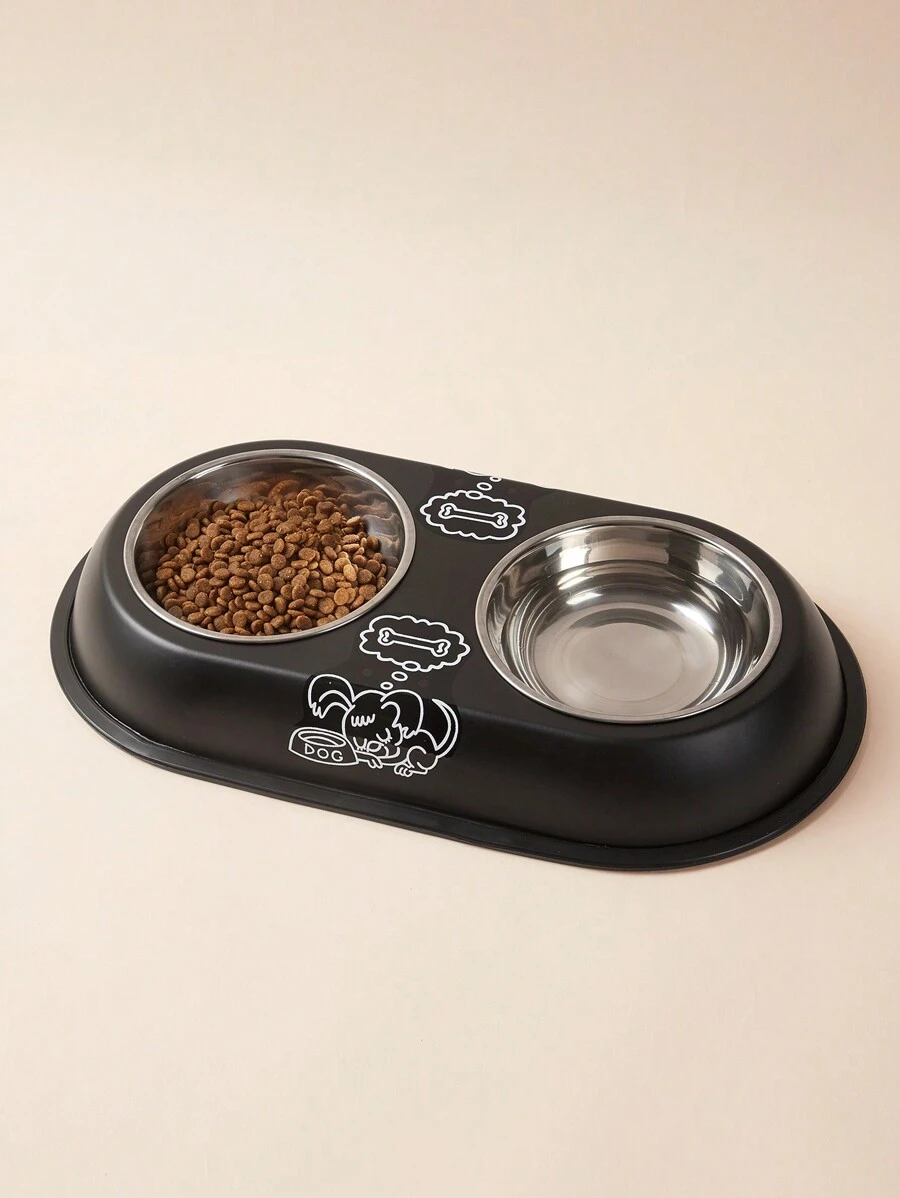 1pc High Grade Stainless Steel Pet Bowl With Double Removable Bowls,Suitable For Small And Medium Dogs And Cats ,Happy 2024