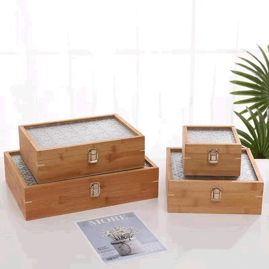 1pc High-end Glass & Wooden Box With Magnolia Pattern. Rectangle Shape With Lid. Used For Jewelry, Certificates, Necklaces And Other Items For Storage And Organization. Suitable For Home And Desktop With Lock Buckle Design. Large Size, 26*18*10cm