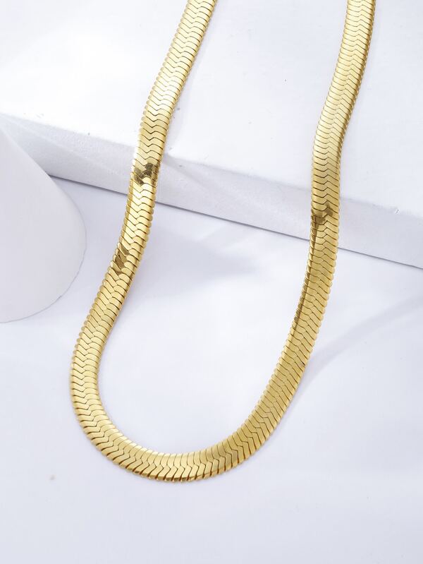 1pc Hip Hop Snake Shape Blade Herringbone Stainless Steel Chain Necklace Jewelry For Women For Daily Wearing & Party Gift