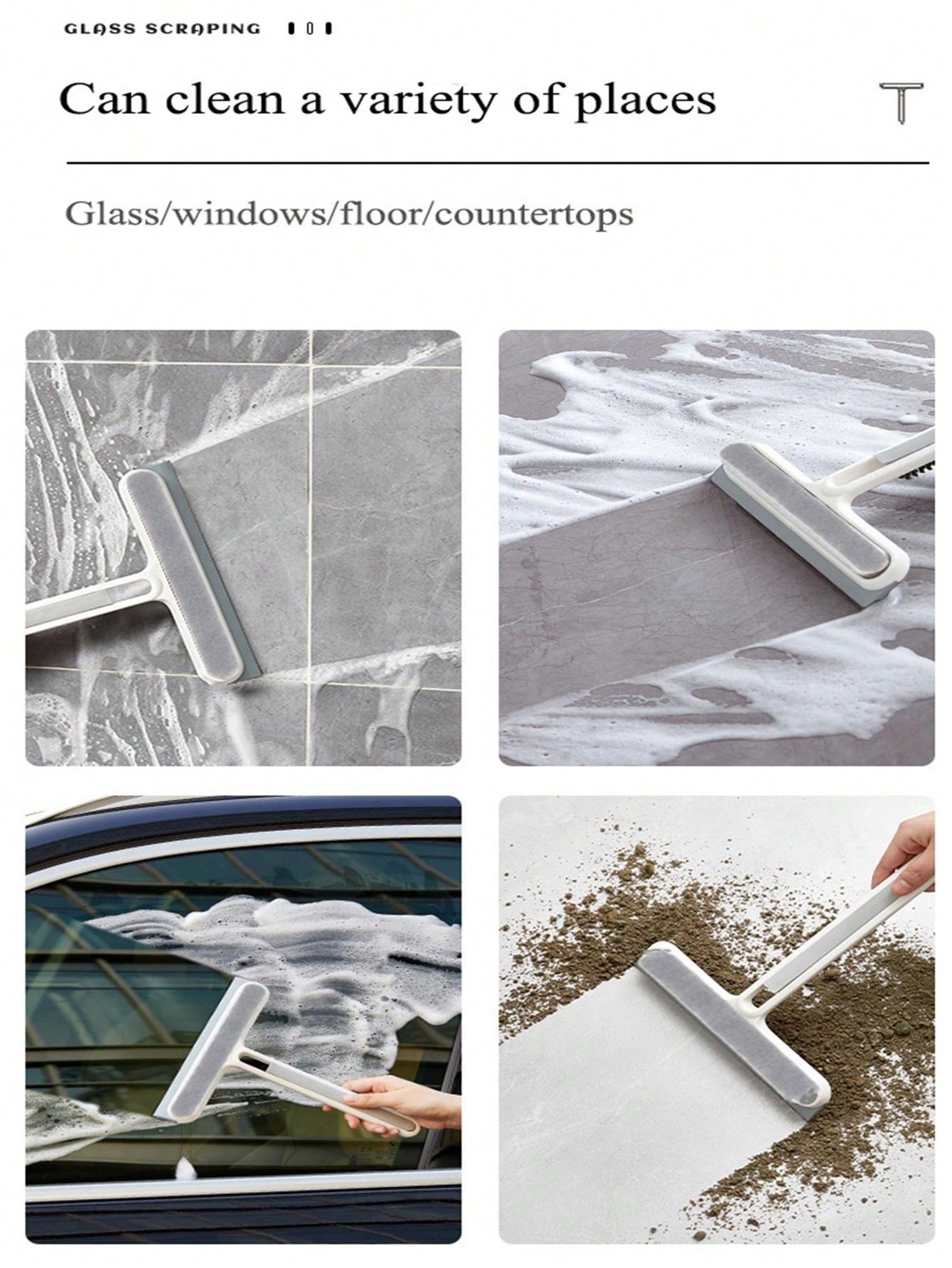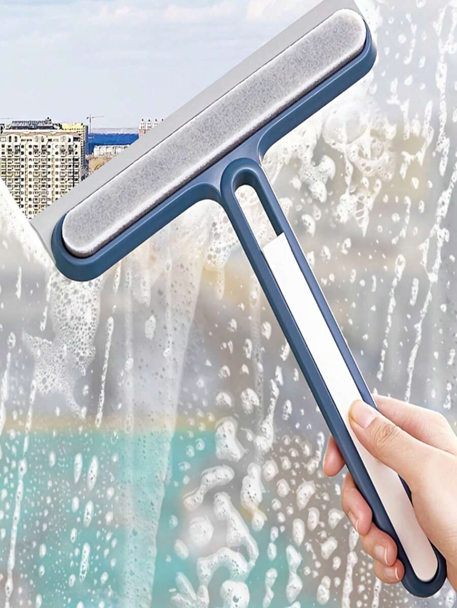 1pc Household Multi-Functional 4-In-1 Glass Cleaning Brush Double-Sided Wiper Screen Brush Glass Wiper Sponge Brush Scraper Window Cleaner Dry And Wet Bathroom Counter Cleaning Brush